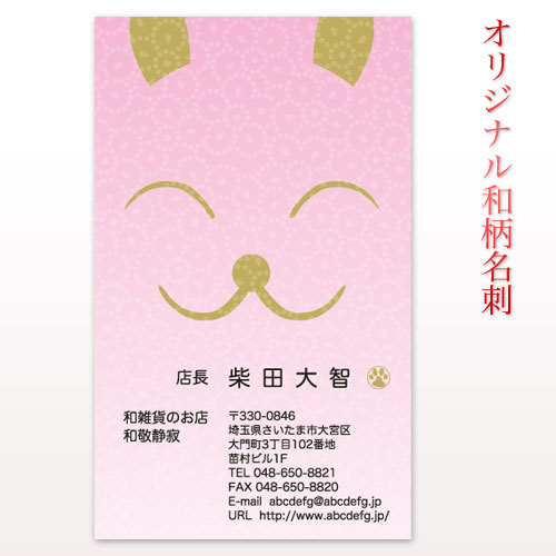 和敬静寂オリジナル 和柄デザイン名刺 子猫様文様 50枚セット