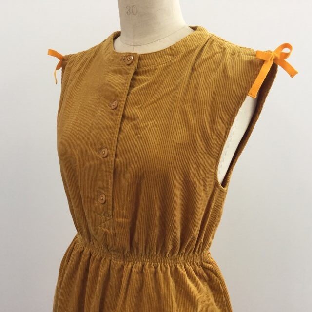 昭和モダン ビンテージ 70年代 レトロ ジャンパースカート コーデュロイ サイズ11/黄土色 ワンピース 送料無料 国内古着