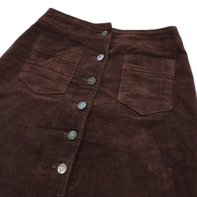 昭和レトロ モダン 70年代 ビンテージ コーデュロイスカート サイズW66/茶 前ボタン 台形 国内古着 送料無料