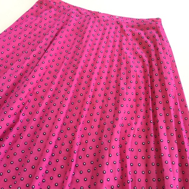 国内古着 昭和レトロ 水玉プリーツスカート 送料無料 レディース 44/ピンク ドット モダン ミモレ丈 古着卸 業販