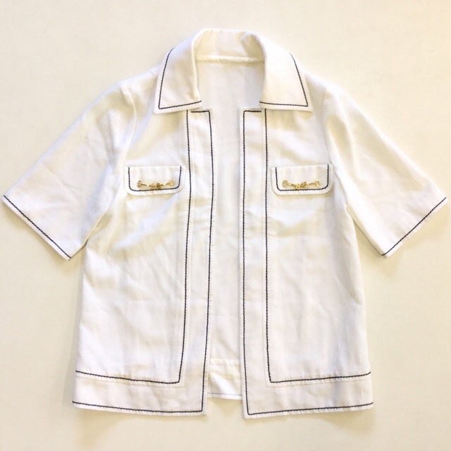 昭和レトロ 半袖ジャケット 送料無料 レディース S-M/白 無地 カジュアル フォーマル モダン ビット 古着御 業販 国内古着