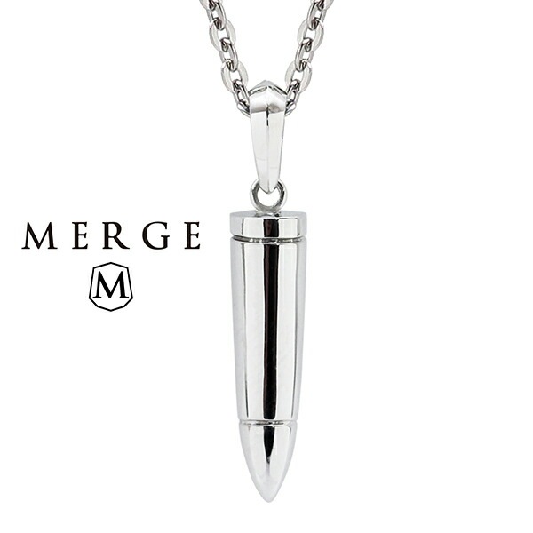 MERGE マージ ステンレス 弾丸 ネックレス チェーン付き ステンレスネックレス 金属アレルギーフリー メンズネックレス ペン...