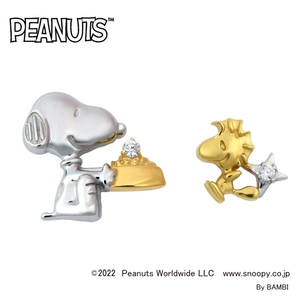 スヌーピー ウッドストック ダイヤモンド アシンメトリー ピアス 2P 両耳用 K10 ゴールド 10金 公式 PEANUTS グ...