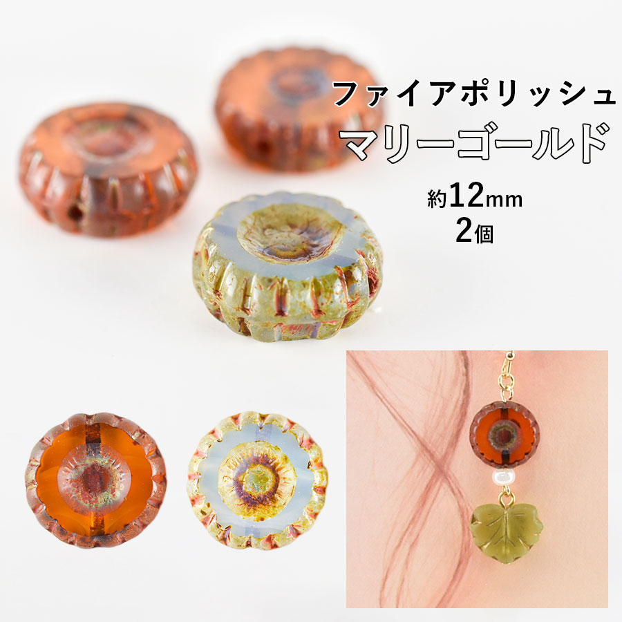 【期間限定40%OFF】チェコビーズ FP マリーゴールド 2個 約12mm 全2色 ガラス ビーズ 花 フラワー パーツ アクセ...