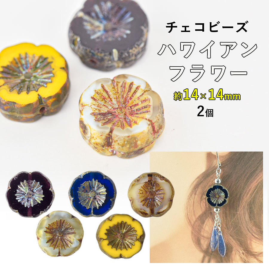 チェコビーズ ハワイアンフラワー 2個 約14×14mm ビーズ パーツ ガラスビーズ アクセサリー ハンドメイド 手芸 手作り ...