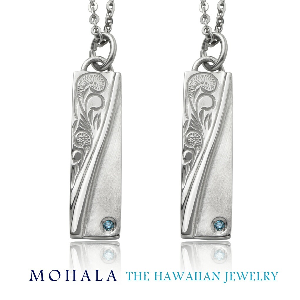 MOHALA モハラ ステンレス ハワイアンジュエリー プリンセスカット ブルーダイヤモンド プレート ペアネックレス チェーン付...