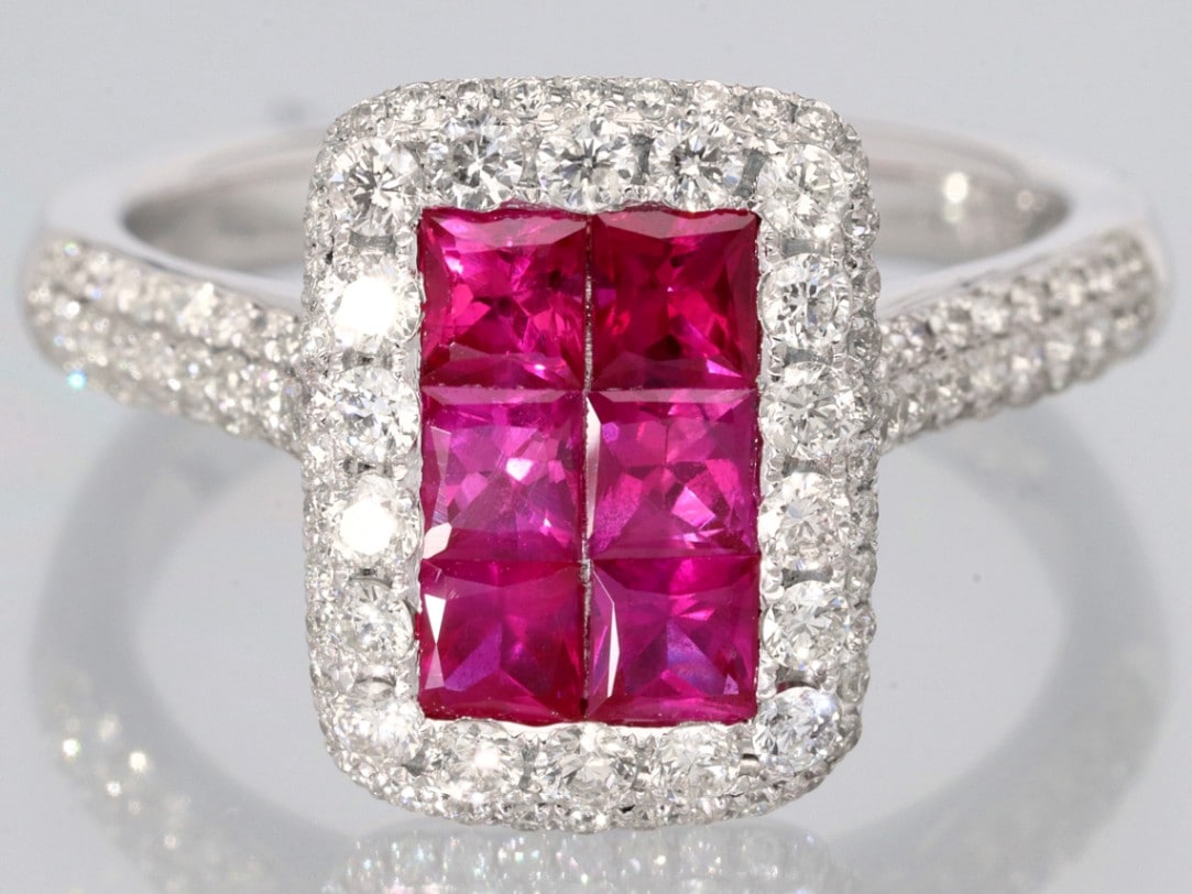 【1点物】鑑別書付き★世界四大宝石★K18WG★1.15ct★プリンセスカット★天然石リング・指輪/天然ルビー・天然ダイヤモンド(...