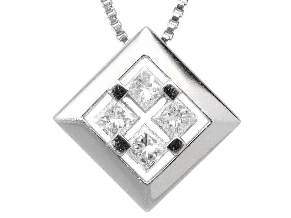 【1点物】鑑定書付★pt900★プリンセスカット★天然石ネックレス・ペンダント/天然ダイヤモンド(Diamond/金剛石/ダイアモ...