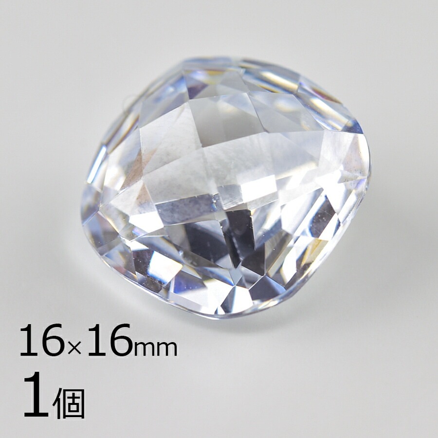 【キュービックジルコニア ルース クッションカット】【1個】【ホワイト(透明) 白系 クリア】【約16×16mm】無穴 パーツ ア...