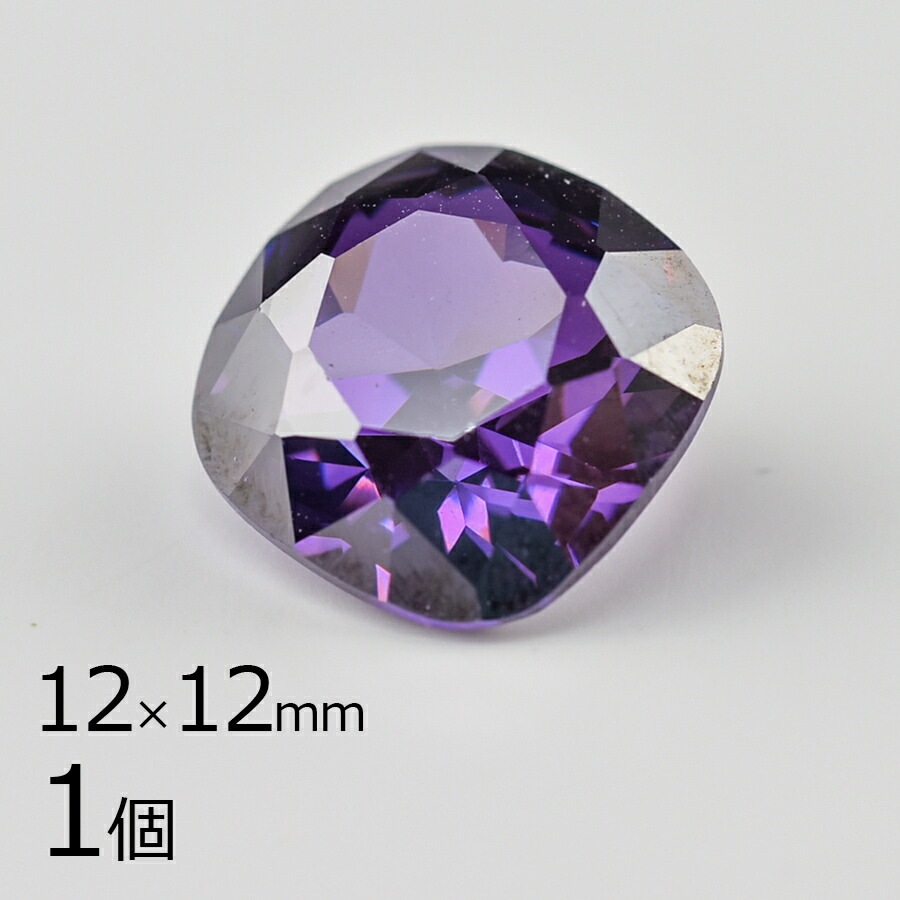 【キュービックジルコニア ルース クッションカット】【1個】【アメジスト 紫系 パープル】【約12×12mm】無穴 パーツ アクセ...
