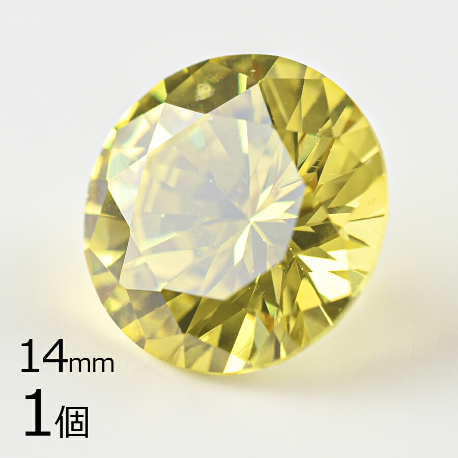 【キュービックジルコニア ルース ラウンドカット2】【1個】【シャンパン 黄系 イエロー】【約14mm】無穴 パーツ アクセサリー...