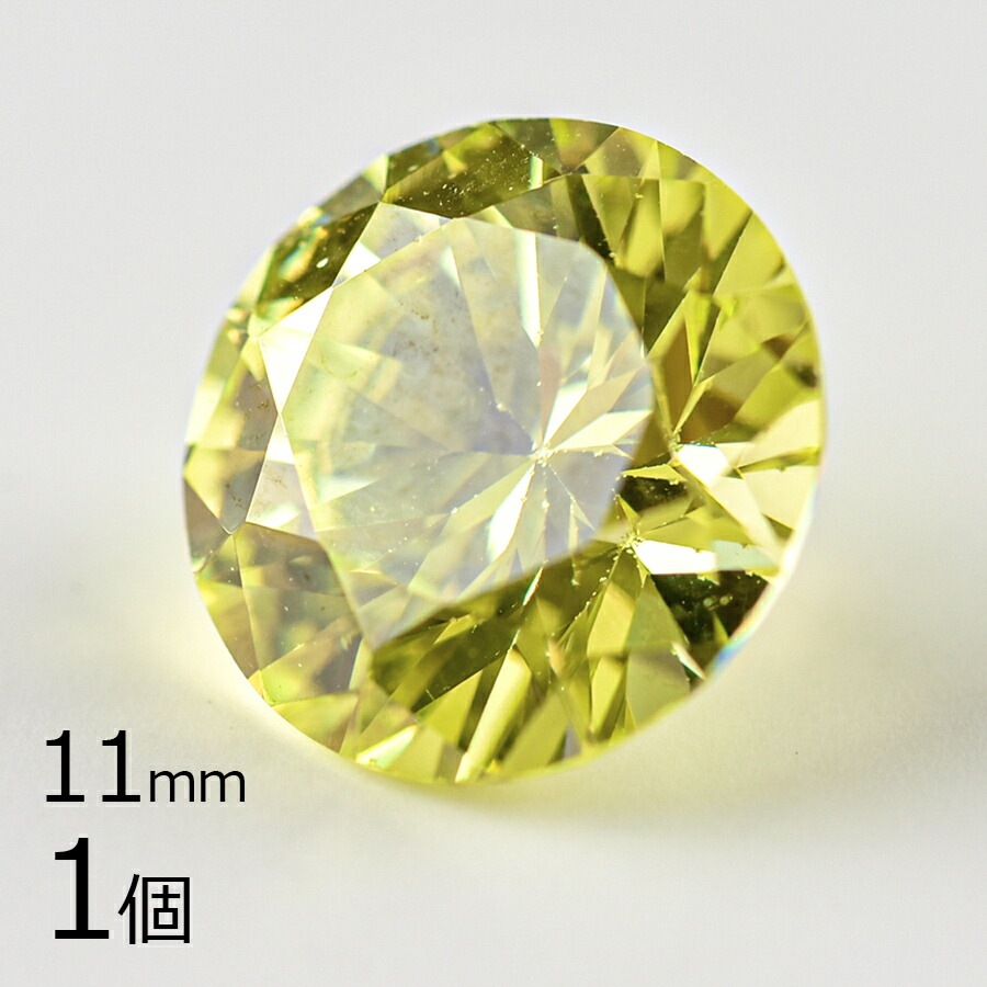 【キュービックジルコニア ルース ラウンドカット1】【1個】【ペリドット 緑系 グリーン】【約11mm】無穴 パーツ アクセサリー...