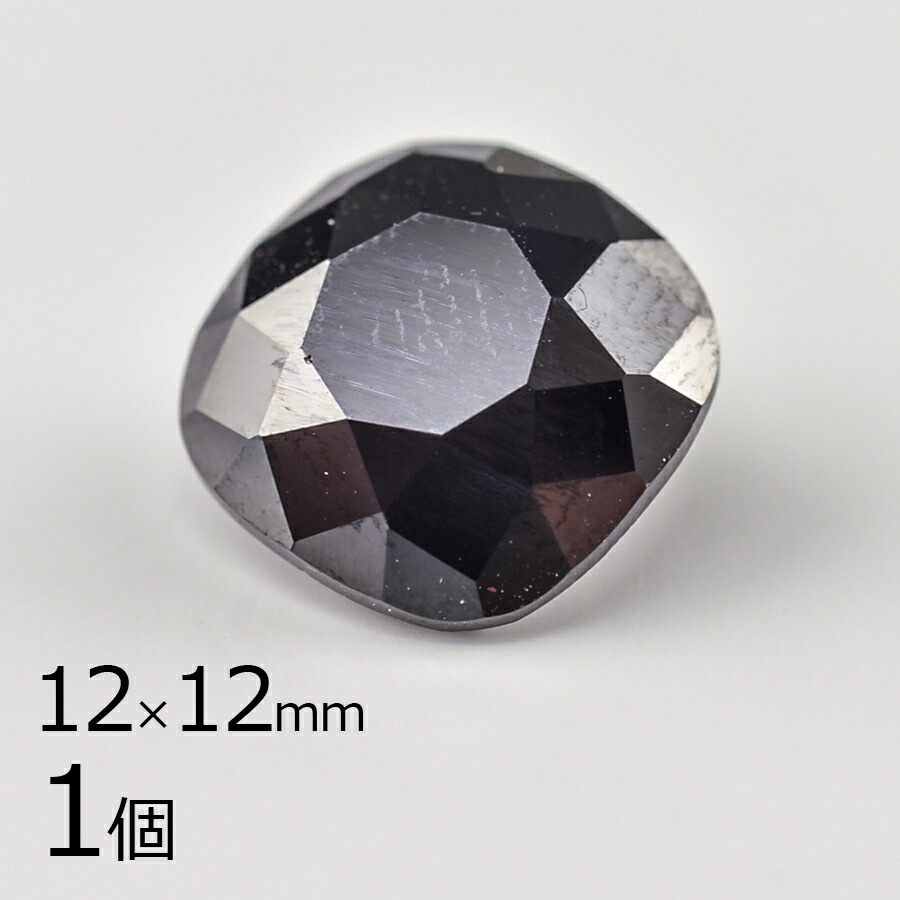 【キュービックジルコニア ルース クッションカット】【1個】【ブラック 黒系】【約12×12mm】無穴 パーツ アクセサリー ハン...