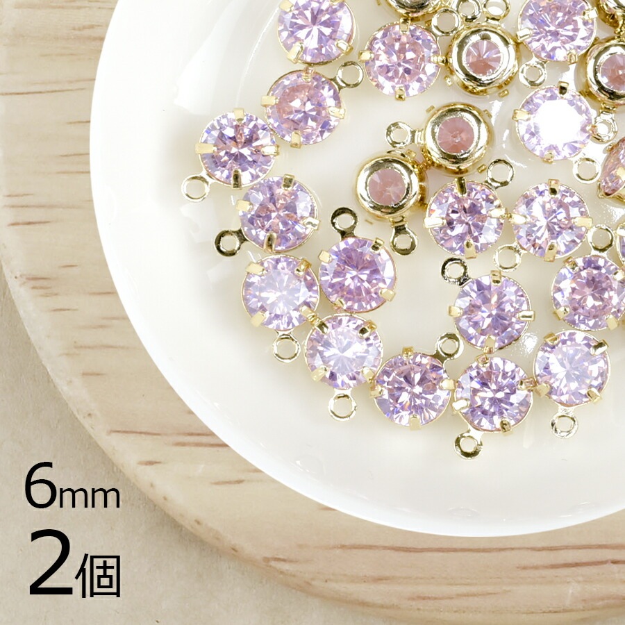 【ガラスビーズ】【2個】キュービックジルコニア チャーム ガラス、真鍮 ラウンド ピンク ピンク系 約6mm パーツ アクセサリー...