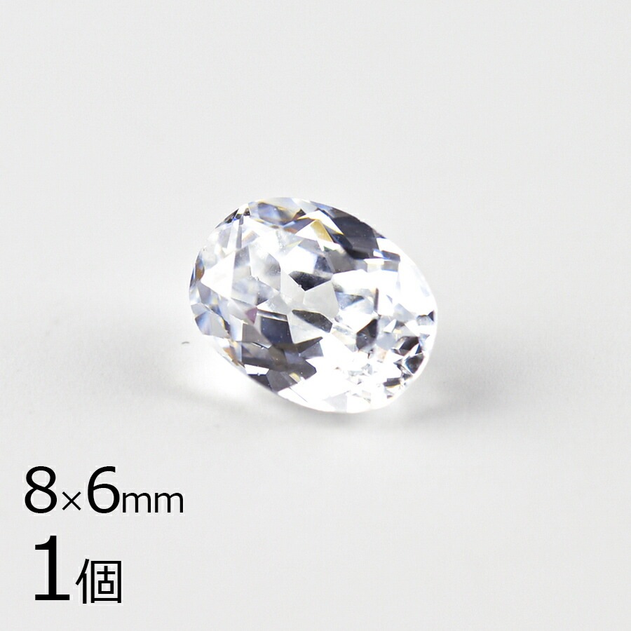 【キュービックジルコニア ルース オーバルカット】【1個】【ホワイト(透明) 白系 クリア】【約8×6mm】無穴 パーツ アクセサ...