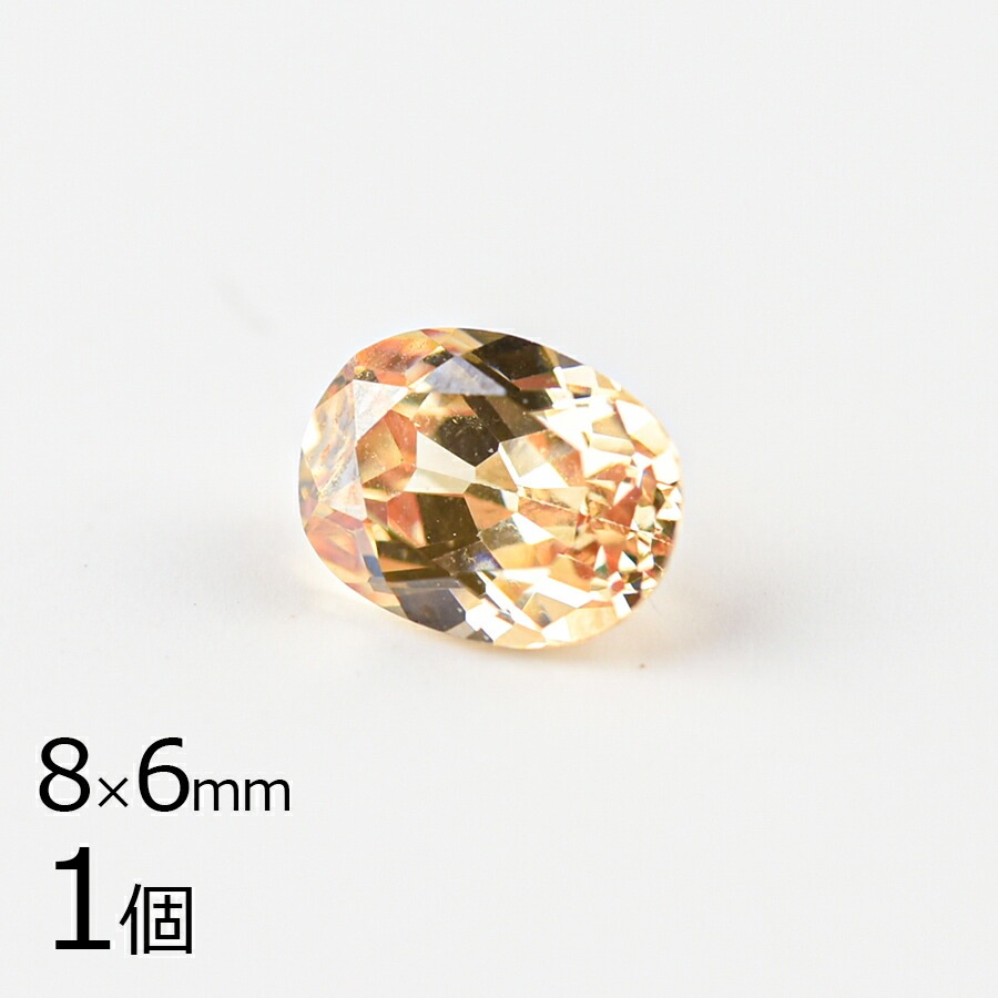 【キュービックジルコニア ルース オーバルカット】【1個】【シャンパン 黄系 イエロー】【約8×6mm】無穴 パーツ アクセサリー...