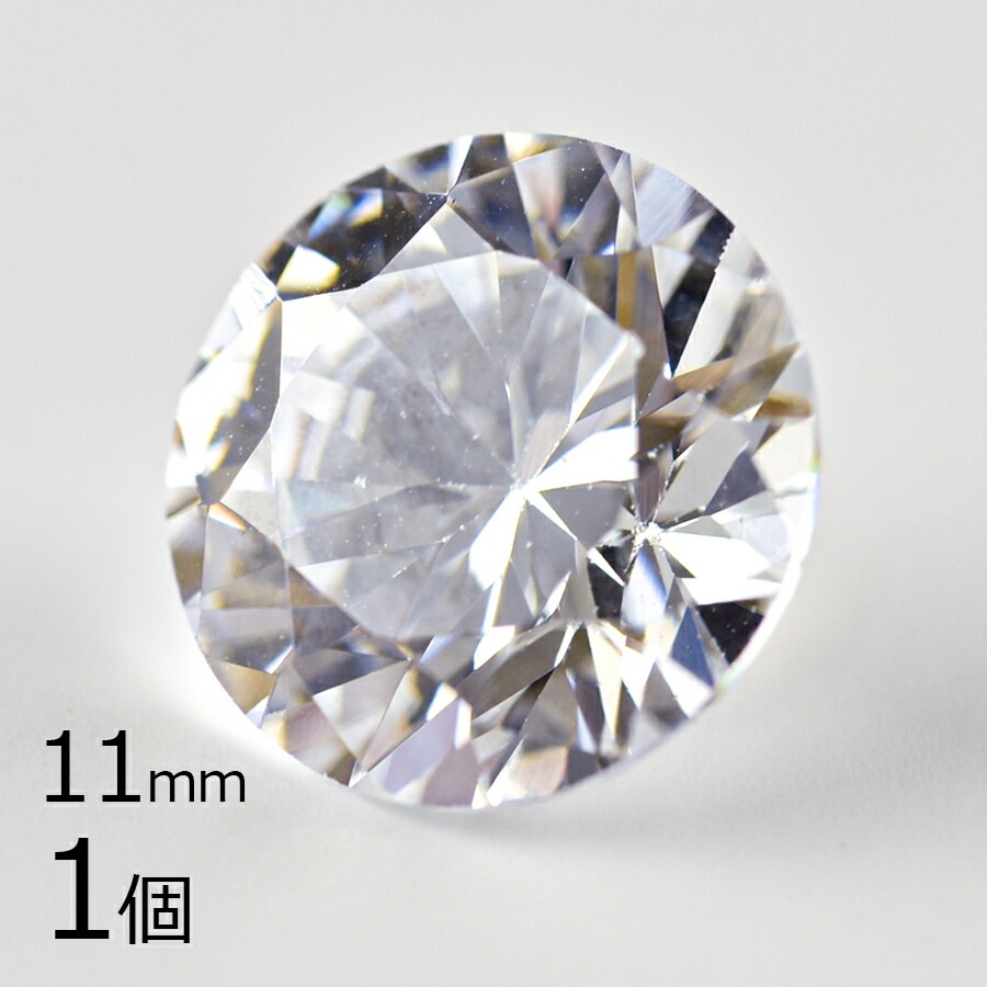 【キュービックジルコニア ルース ラウンドカット1】【1個】【ホワイト(透明) 白系 クリア】【約11mm】無穴 パーツ アクセサ...