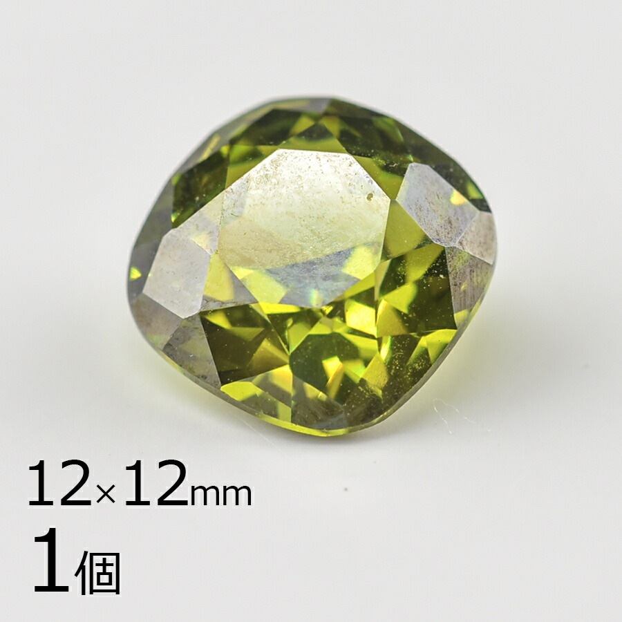 【キュービックジルコニア ルース クッションカット】【1個】【オリーブ 緑系 グリーン】【約12×12mm】無穴 パーツ アクセサ...