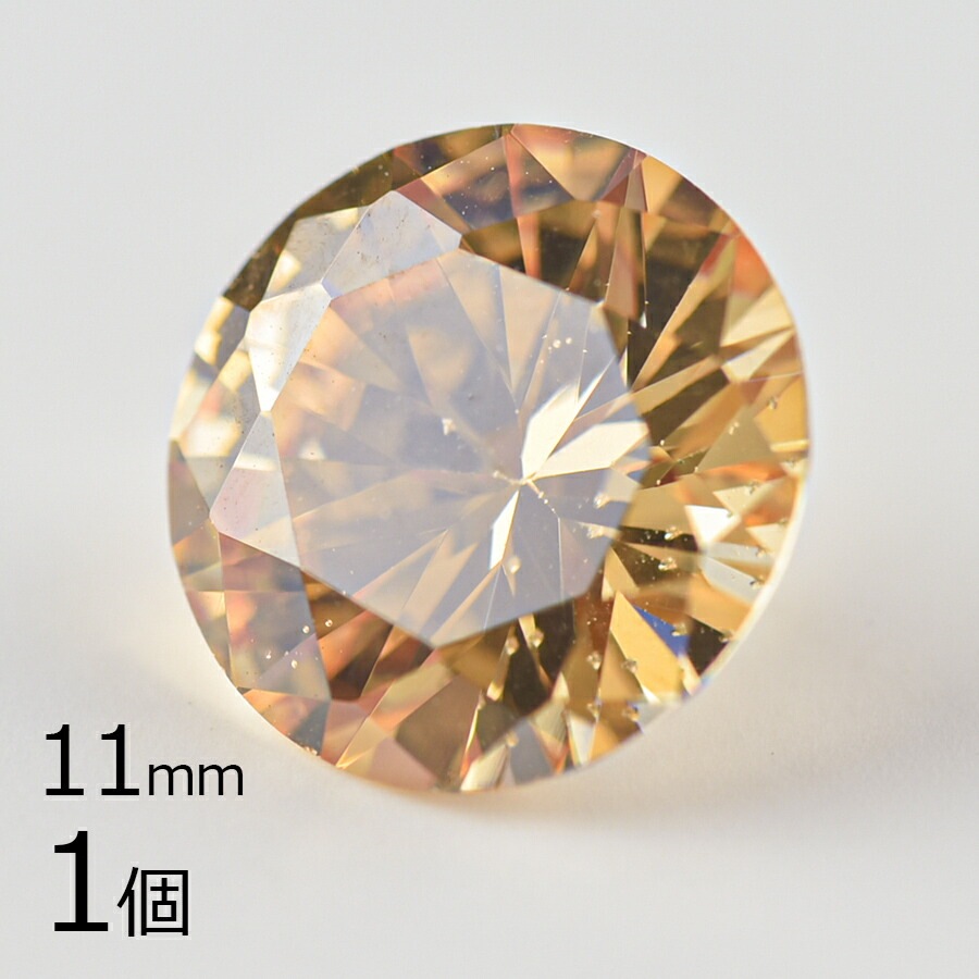 【キュービックジルコニア ルース ラウンドカット1】【1個】【シャンパン 黄系 イエロー】【約11mm】無穴 パーツ アクセサリー...