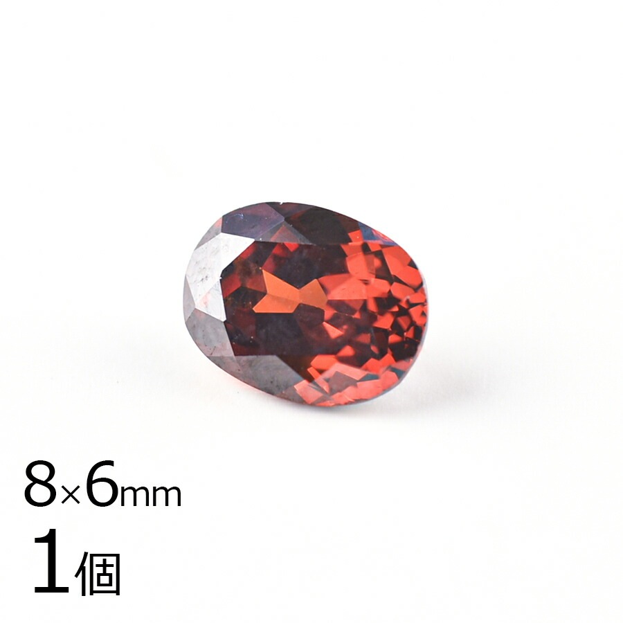 【キュービックジルコニア ルース オーバルカット】【1個】【レッド 赤系】【約8×6mm】無穴 パーツ アクセサリー ハンドメイド...