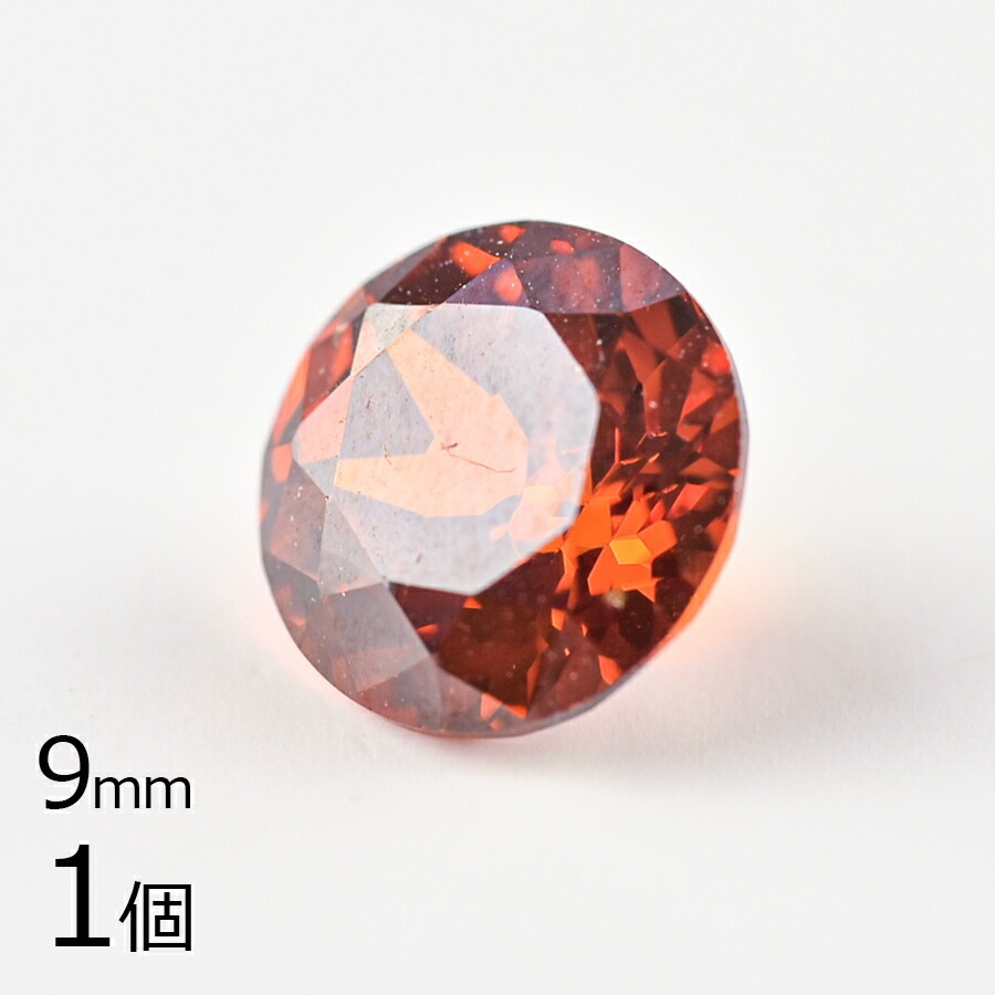 【キュービックジルコニア ルース ラウンドカット1】【1個】【レッド 赤系】【約9mm】無穴 パーツ アクセサリー ハンドメイド ...