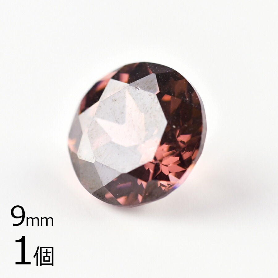 【キュービックジルコニア ルース ラウンドカット1】【1個】【ローズピンク ピンク系 ピーチ】【約9mm】無穴 パーツ アクセサリ...