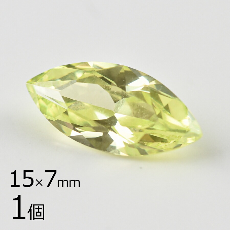 【キュービックジルコニア ルース マーキスカット】【1個】【ペリドット 緑系 グリーン】【約15×7mm】無穴 パーツ アクセサリ...
