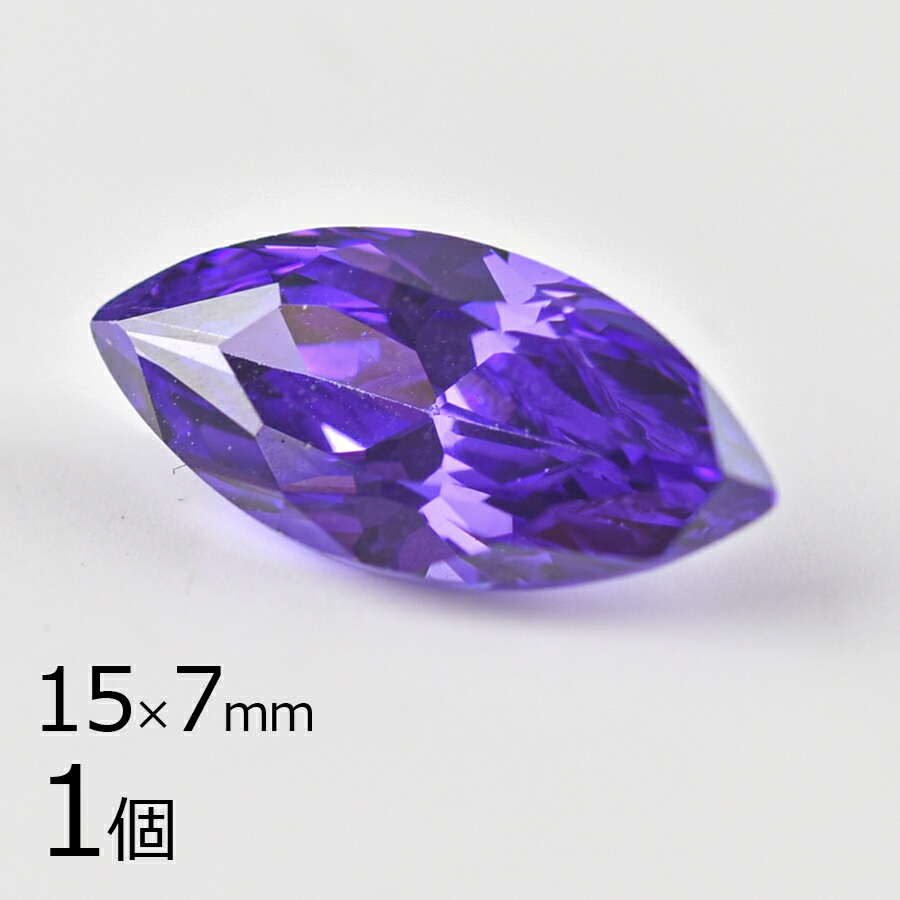 【キュービックジルコニア ルース マーキスカット】【1個】【バイオレット 紫系 パープル】【約15×7mm】無穴 パーツ アクセサ...