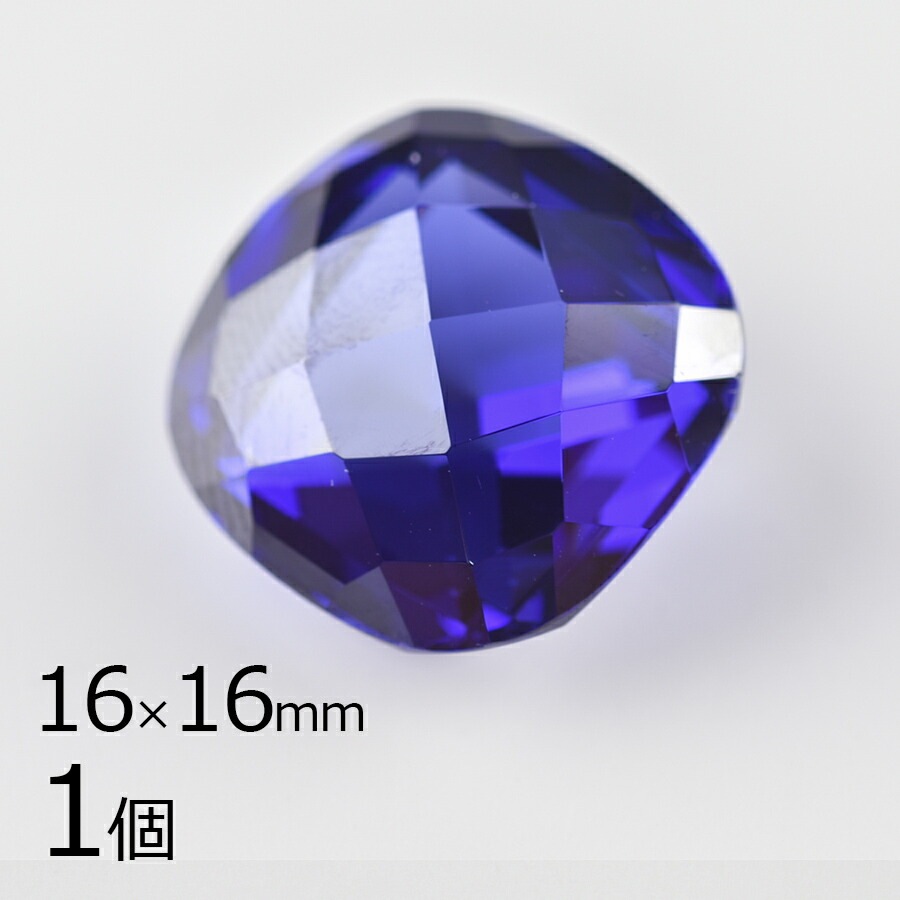 【キュービックジルコニア ルース クッションカット】【1個】【タンザナイト 青系 ブルー】【約16×16mm】無穴 パーツ アクセ...