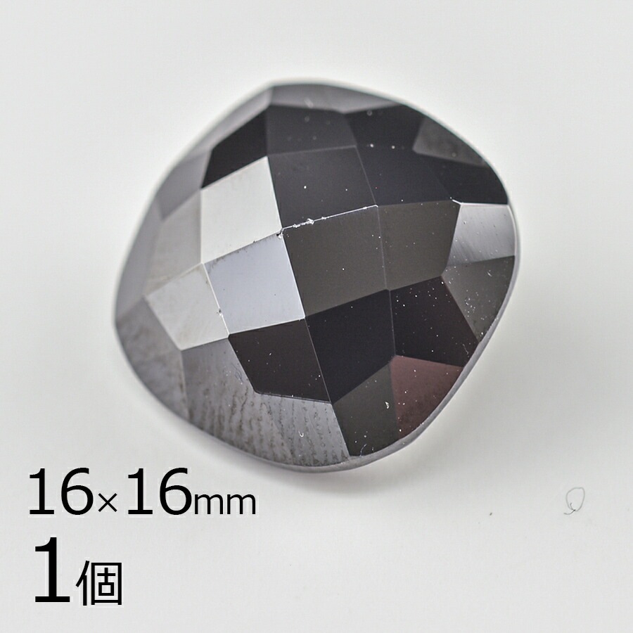 【キュービックジルコニア ルース クッションカット】【1個】【ブラック 黒系】【約16×16mm】無穴 パーツ アクセサリー ハン...