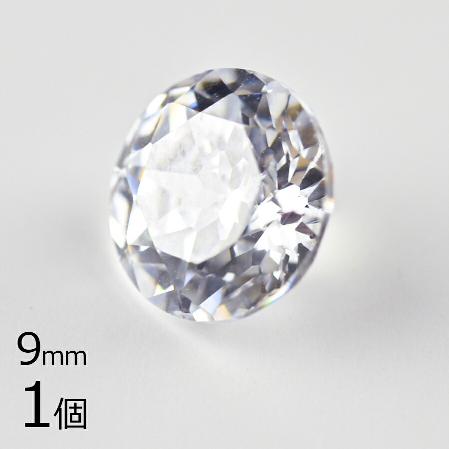 【キュービックジルコニア ルース ラウンドカット1】【1個】【ホワイト(透明) 白系 クリア】【約9mm】無穴 パーツ アクセサリ...