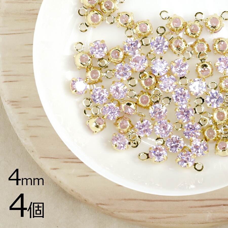 【ガラスビーズ】【4個】キュービックジルコニア チャーム ガラス、真鍮 ラウンド ピンク ピンク系 約4mm パーツ アクセサリー...