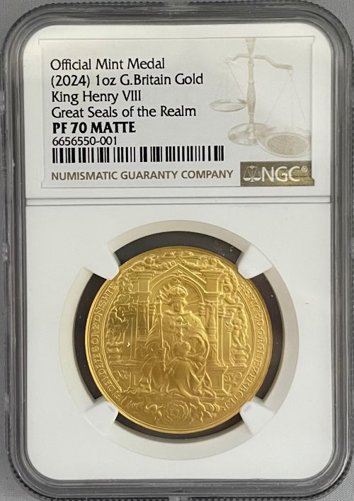 【動画あり】【英国の国璽】グレートブリテン ヘンリー8世の印章 1オンス マットプルーフ純金金貨 NGC-PF70マットプルーフ ...