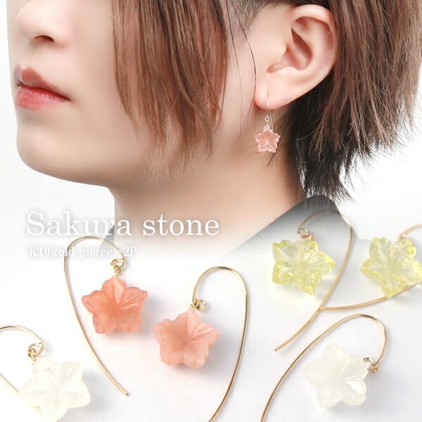 Irise coffret 選べる3種類 天然石 桜 フックピアス 2P 両耳用 K10 ゴールド 10金 10K ムーンストーン...