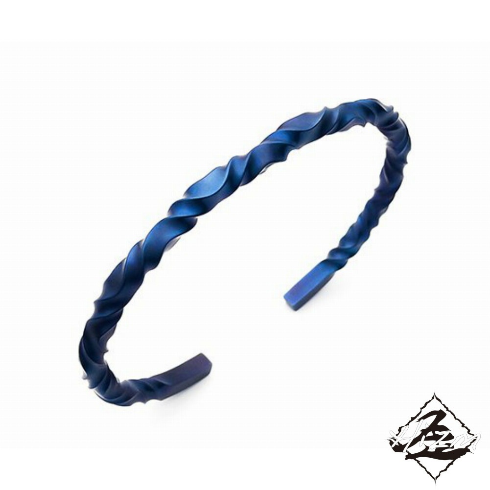 Hizm ゆらぎチタンバングル Large 青 純チタン バングル 15-20cm チタンアクセサリー 腕輪 金属アレルギー アレ...