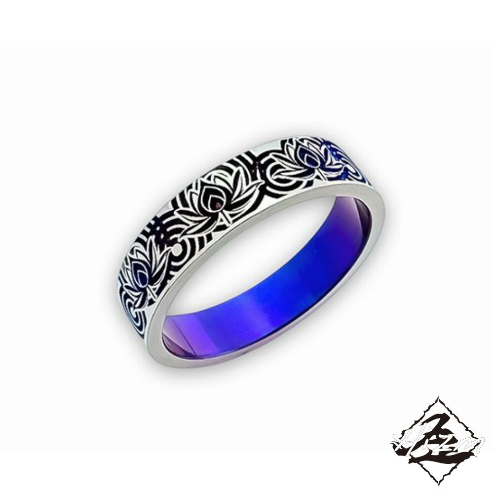 Hizm 空色蓮華リング 5mm 幅 赤紫色×青色 純チタン製 1-30号 チタンアクセサリー リング 指輪 金属アレルギー アレ...