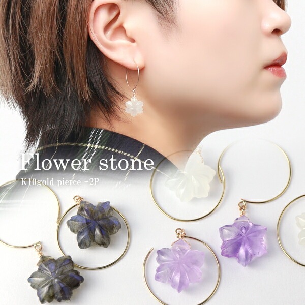 Irise coffret 選べる3種類 天然石 フラワー フープピアス 2P 両耳用 K10 ゴールド 10金 10K ムーンス...