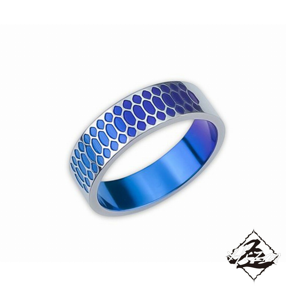 Hizm 鱗紋様リング 6mm 幅 青紫×青 純チタン製 チタンアクセサリー リング 指輪 金属アレルギー アレルギーフリー 上品...