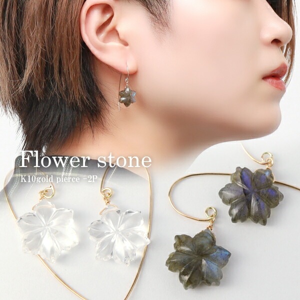 Irise coffret 選べる2種類 天然石 フラワー フックピアス 2P 両耳用 K10 ゴールド 10金 10K ラブラド...