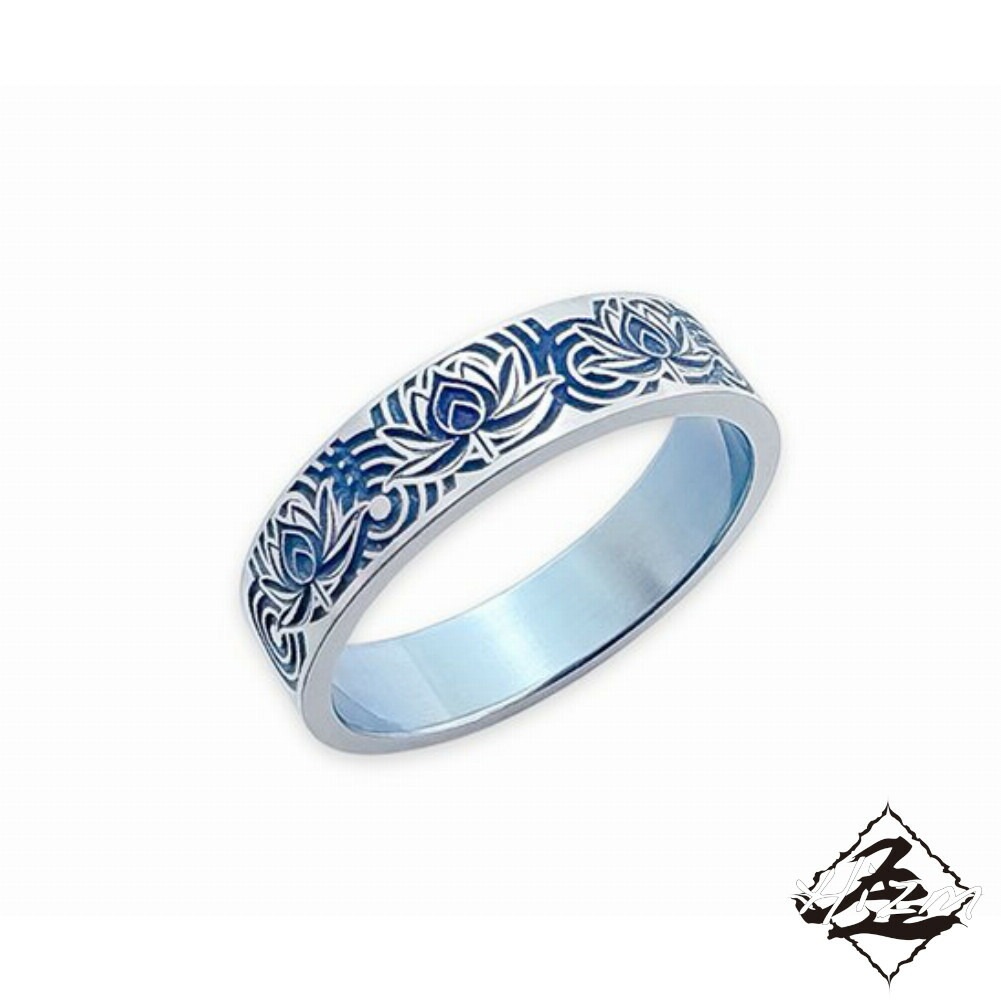Hizm 空色蓮華リング 5mm 幅 青グラデーション 純チタン製 1-30号 チタンアクセサリー リング 指輪 金属アレルギー ...