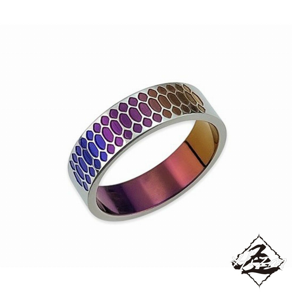 Hizm 鱗紋様リング 6mm 幅 紫×天色×碧 純チタン製 チタンアクセサリー リング 指輪 金属アレルギー アレルギーフリー ...
