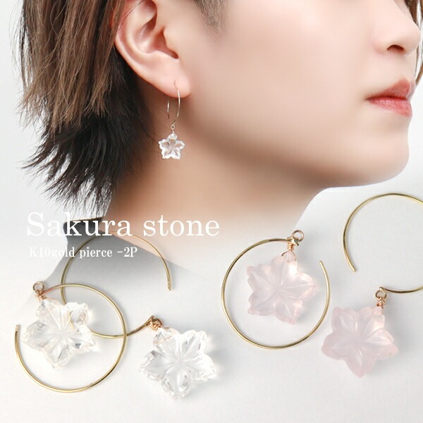 Irise coffret 選べる2種類 天然石 桜 フープピアス 2P 両耳用 K10 ゴールド 10金 10K ローズクォーツ...