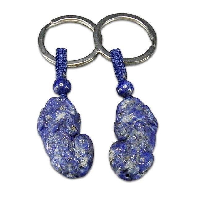 天然石ラピスラズリヒキュウ彫りステンレス製キーホルダー雄雌ペア