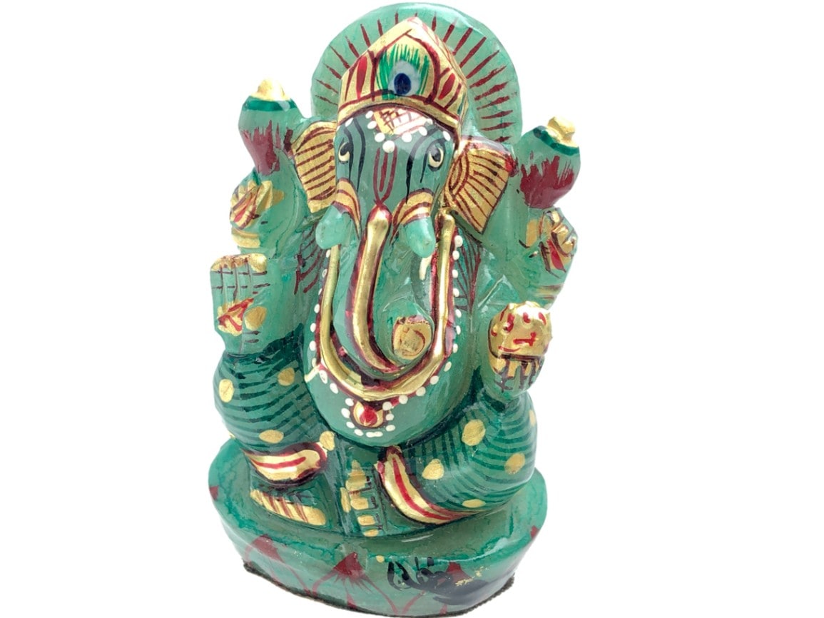 【1点物】華やか!★美しい彫刻★豊穣・英知・商売繁盛の神★天然石/グリーンアベンチュリン/ガネーシャ置物(砂金水晶/砂金石英/Av...