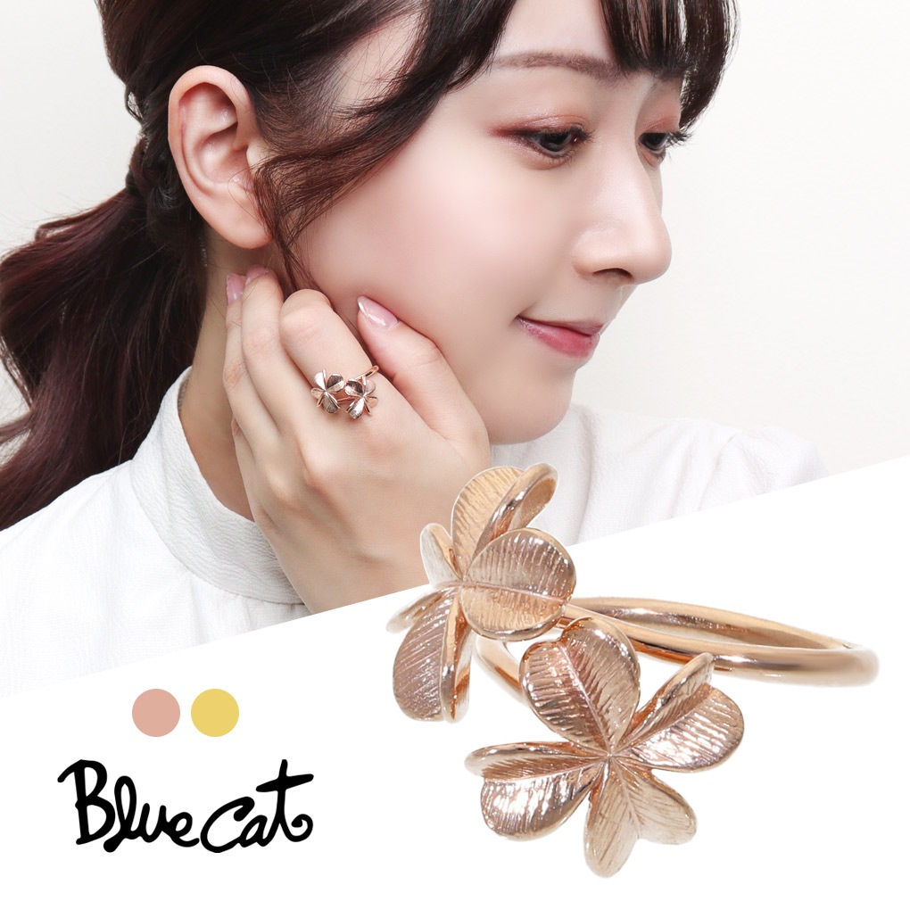 Blue Cat クローバー リング 指輪 8~13号 フリーサイズ シルバー925 ピンク ゴールド 四つ葉 四葉 四つ葉のクロ...