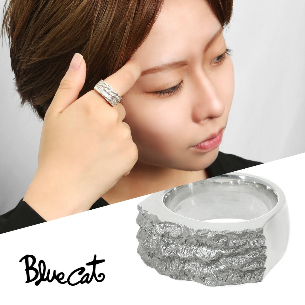Blue Cat つや消し スクラッチ模様 リング 指輪 8~15号 シルバー925 シンプル 無骨 存在感 かっこいい スタイリ...