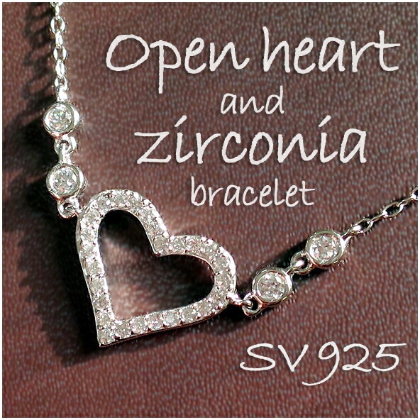 オープンハート ラインストーン シルバーブレスレット 16.5~19cm ブレスレット シルバー925 銀 キュービックジルコニア...