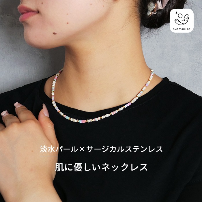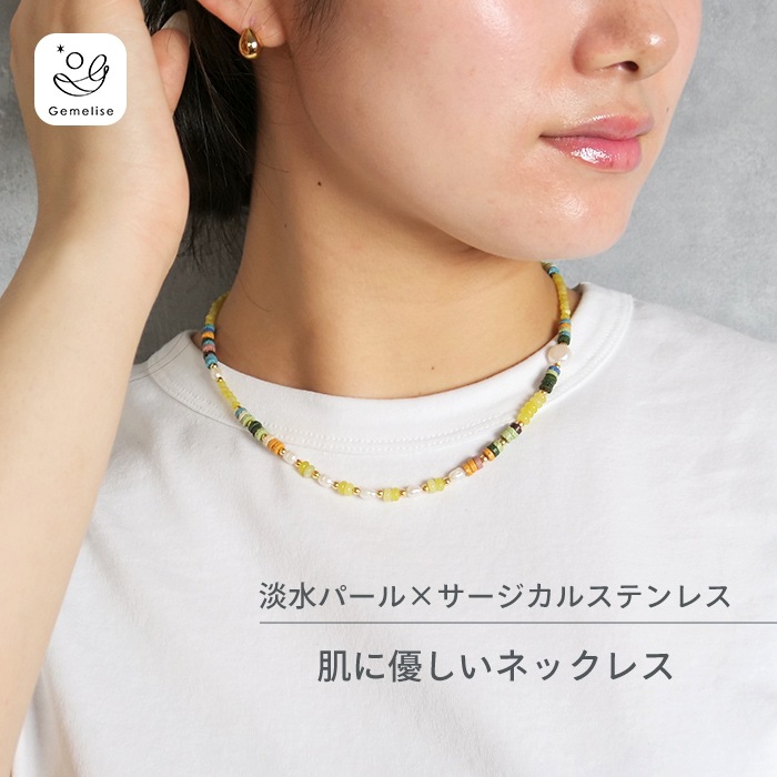 Gemelise ジェメリース 淡水パール×人工石(マルチカラー)ネックレス 950252