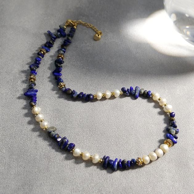 Gemelise ジェメリース 淡水パール×天然石(ラピスラズリ)ネックレス 950213