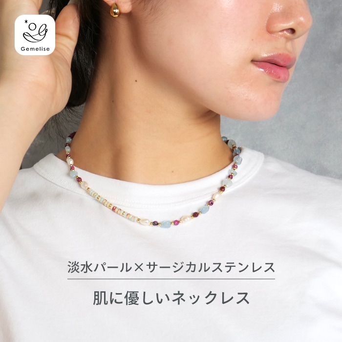 Gemelise ジェメリース 淡水パール×天然石(アクアマリンなど)ネックレス 950248